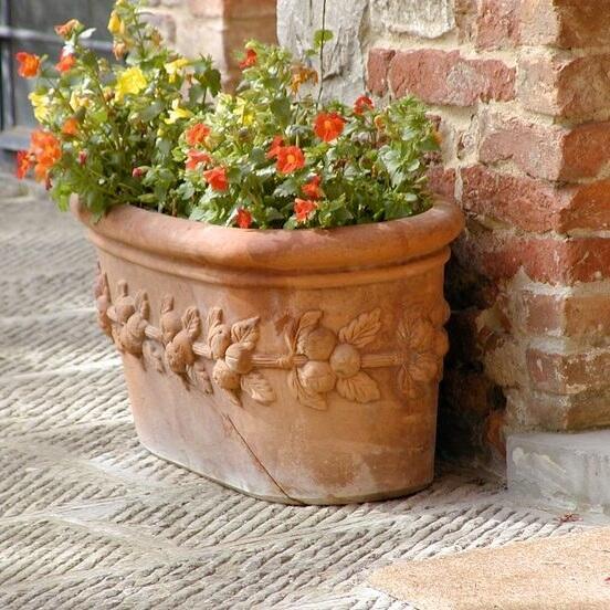 Per il design slanciato e il bordo smussato è un vaso da esterno molto amato.
